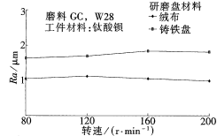 b)磨料粒度圖2研磨工藝參數與表面粗糙度的關系