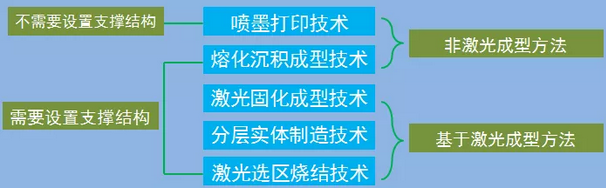 目前,3D打印陶瓷技術主要有噴墨打印技術、熔化沉積成型技術、激光固化成型技術、分層實體制造技術和激光選區燒結技術,這些技術可以按不同標準分類。其中,基于激光成型的方法有光固化成型技術、分層實體制造技術和激光選區燒結技術技術,另外兩種屬于非激光成型方法。